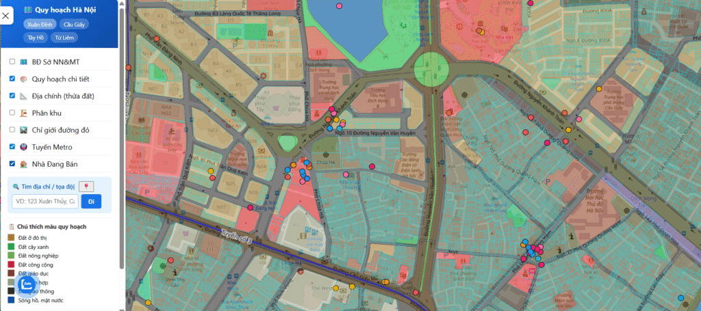 Tích hợp lớp quy hoạch: Đối chiếu trực tiếp giá trị hiện tại với quy hoạch tương lai trên nền tảng bản đồ số ( tích chọn “Nhà đang bán“)