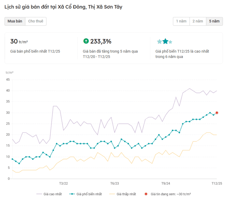 Đây là chuyên trang tin đăng chỉ bất động sản lớn nhất và lâu đời tại Việt nam. Nhờ lượng dữ liệu tích lũy, Batdongsan.com.vn có biểu đồ lịch sử dược đánh giá cao.